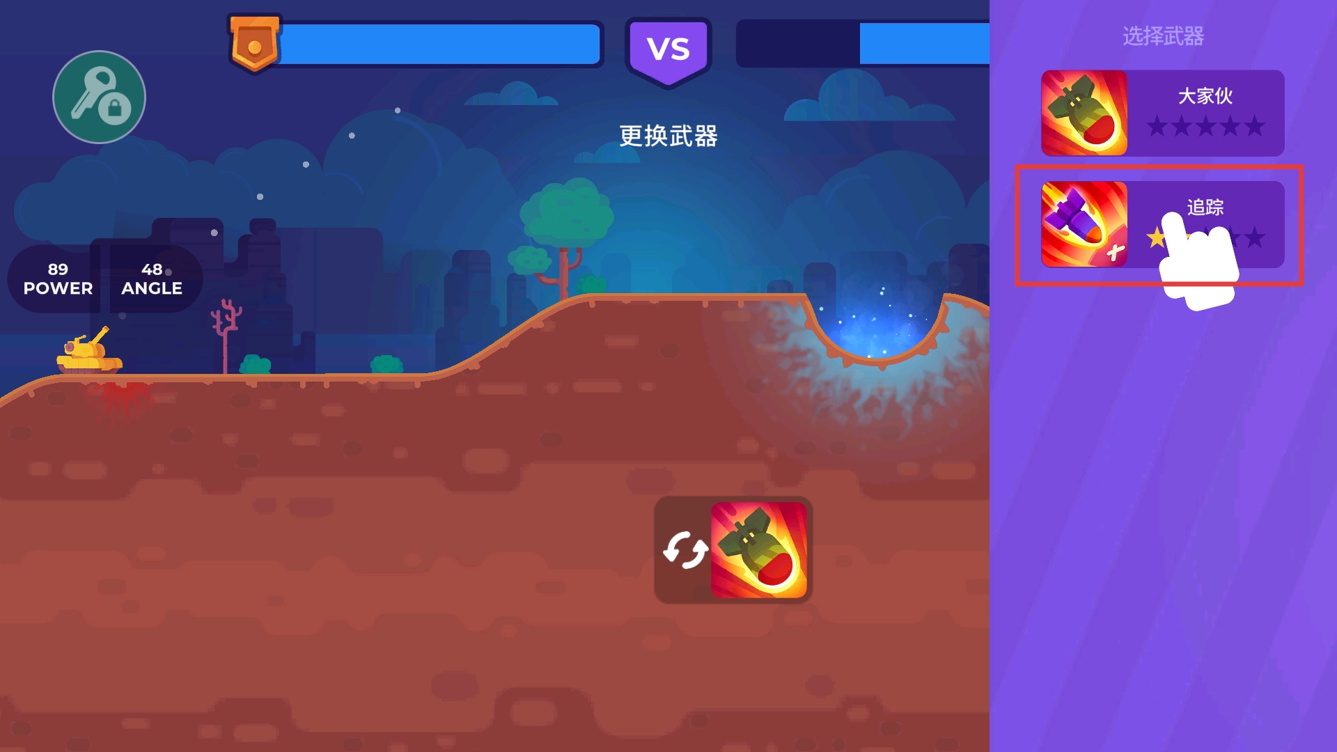 4、對戰中點擊【更換武器圖標】,從右側選擇【追蹤】類武器,提升攻擊精準度,有效打擊遠處對手。