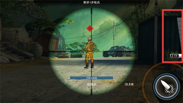 2、進入對局后通過瞄準鏡鎖定目標步槍兵,可調整右側倍率放大視野便于瞄準。