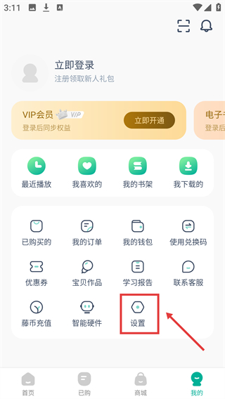 2、進(jìn)入【我的】頁(yè)面后,可點(diǎn)擊【設(shè)置】進(jìn)入設(shè)置界面。