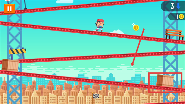 速降滑板將玩家帶入一個充滿街頭氣息的像素世界,通過指尖操控展開一場炫技與速度的冒險之旅。可以踩著個性滑板穿梭于城市坡道與極限賽道,施展空中翻轉、欄桿滑行等酷炫動作,體驗風馳電掣的快感。游戲融合了跑酷的刺激與益智的趣味,每個關卡都暗藏巧妙機關,需要精準操作才能完美通關。從菜鳥到滑板高手的成長之路,等待您來書寫。