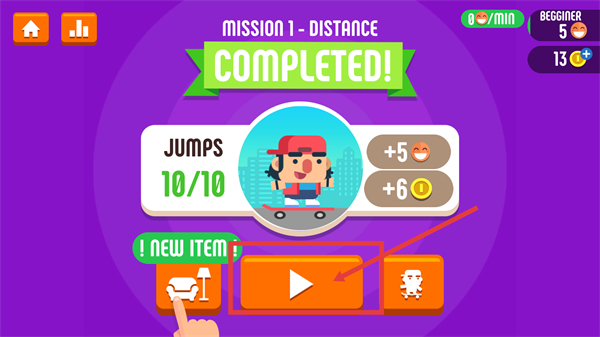 1、打開【TAPSKATERS】游戲,點擊主界面橙色播放按鈕開始游戲。