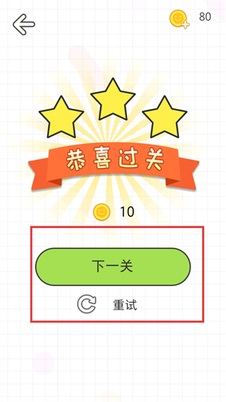 4、通關后獲得三顆星與金幣獎勵,點擊【下一關】繼續挑戰新關卡。