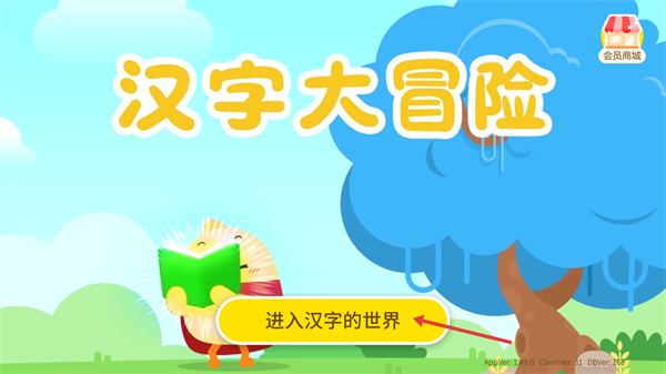 1、在【漢字大冒險】界面,點擊【進入漢字的世界】按鈕開啟漢字學習。