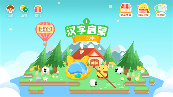 2、進入后會到【漢字啟蒙】界面,點擊帶標識的房子進入學習。