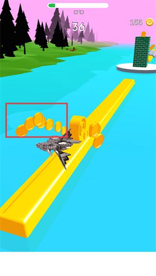 1、操控龍形工具沿木板移動,收集沿途金幣的同時積累基礎分數,將金幣數量提升至【158】。