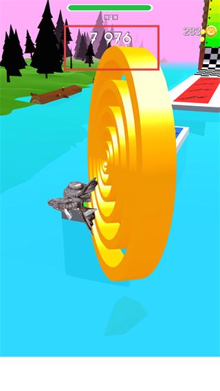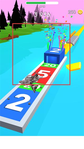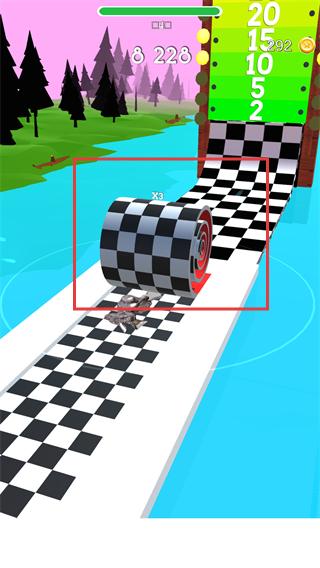 4、抵達終點前撞擊帶【x3】標識的道具,觸發3倍收益,將最終分數提升至【8228】完成關卡。