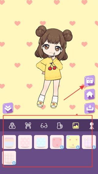 3、在底部紅框選擇【背景】,點擊右側【拍照】圖標保存裝扮。