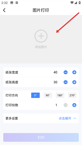 1、在APP首頁點擊【圖片打印】選項,進入圖片打印的操作頁面。
