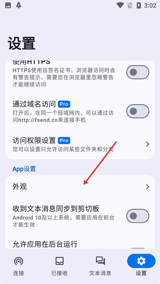2、在設(shè)置頁面找到【外觀】選項,進入外觀自定義配置頁面。