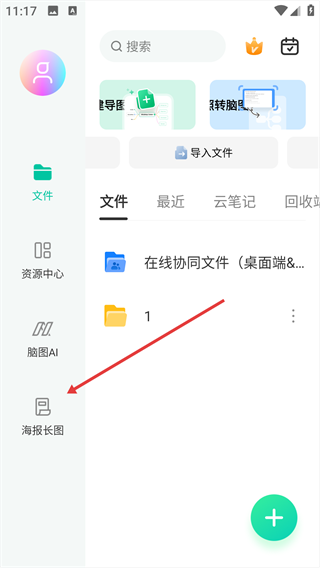 1、點(diǎn)擊左側(cè)的【海報(bào)長(zhǎng)圖】選項(xiàng),進(jìn)入海報(bào)長(zhǎng)圖頁(yè)面。