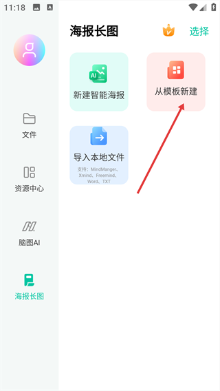 2、在海報(bào)長(zhǎng)圖頁(yè)面,點(diǎn)擊【從模板新建】選項(xiàng)。