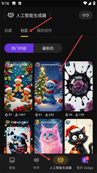1、進(jìn)入【人工智能生成器】的【社區(qū)】頁(yè)面,點(diǎn)擊目標(biāo)作品。