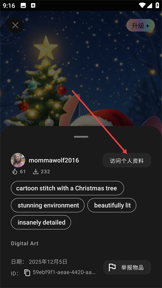 3、彈出包含作品信息的彈窗,選擇【訪問(wèn)個(gè)人資料】選項(xiàng)。