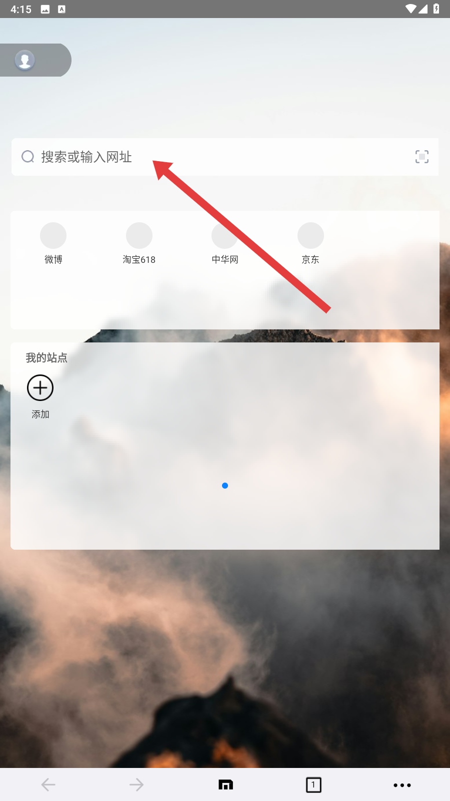 1、打開傲游瀏覽器,點擊【搜索或輸入網址】欄,輸入視頻關鍵詞,開啟視頻下載流程哦。
