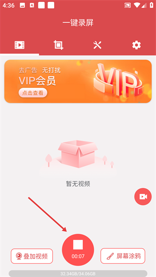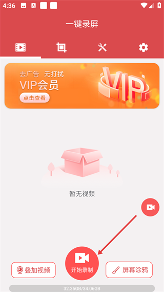 1、打開一鍵錄屏app,點擊上方第三個按鈕