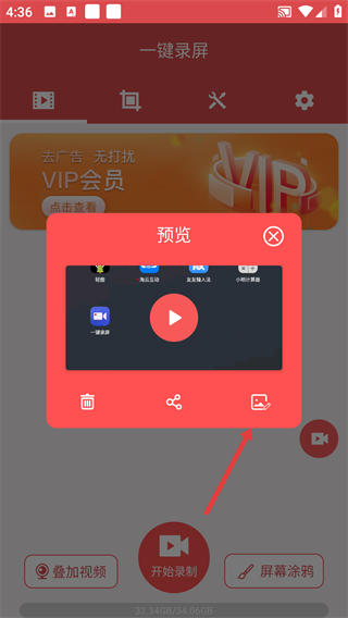 3、錄屏結束后會彈出【預覽】窗口,點擊右側圖標,進入編輯頁面。