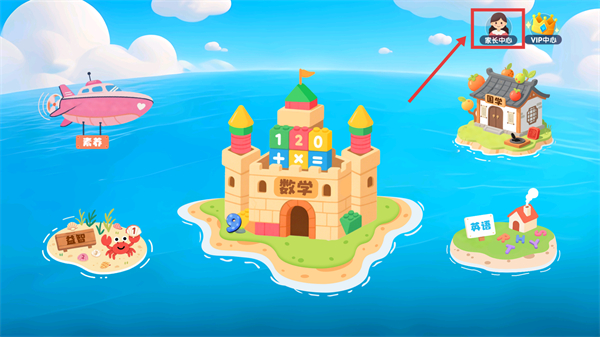 1、進入【貝樂虎數學】主界面后,可點擊【家長中心】。