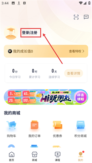 2、進入【我的】頁面后,點擊【登錄|注冊】進入登錄頁。
