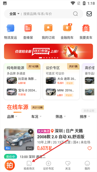 優信拍是一款由北京五八拍拍信息技術有限公司研發的二手車交易電子市場,是國內領先的二手車網絡交易企業。核心業務提供一站式服務,包括出價、車況查定、安全支付、售后服務及遠程物流,服務于汽車生產廠商的品牌經銷商、二手車經營機構、大型用車企業及車主。平臺在北京、上海、廣州、成都、天津、杭州、武漢、深圳8大中心城市設有集中交付和現場購服務場地,顯著提升分銷與收購效率。用戶輸入品牌或車系關鍵詞即可搜索豐富車輛信息,添加關注后實時接收更新動態,享受便捷交易體驗。