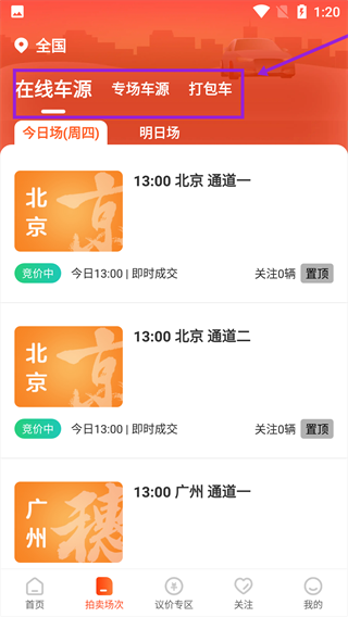 1、點擊底部的【拍賣場次】選項,進入拍賣場次頁面。