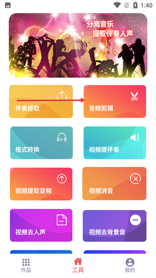 1、點(diǎn)擊【音頻剪輯】選項(xiàng),進(jìn)入【音頻選擇】頁(yè)面。