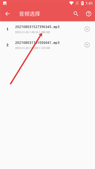 2、在【音頻選擇】頁(yè)面,點(diǎn)擊目標(biāo)音頻文件。