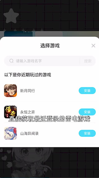 7、直接獲取最近登錄的雷電游戲或搜索游戲名安裝