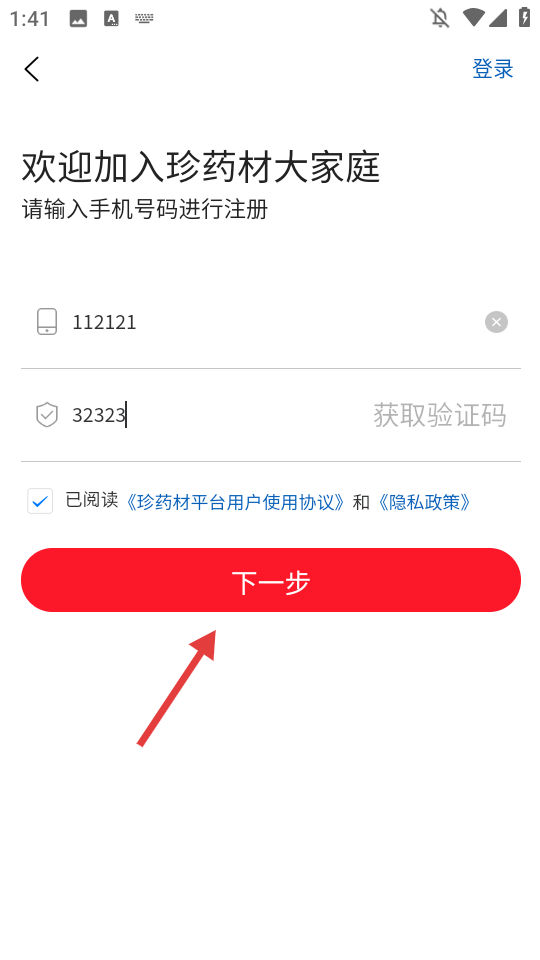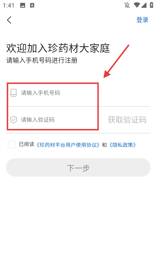 3、依次輸入【手機號碼】、獲取并輸入【驗證碼】。