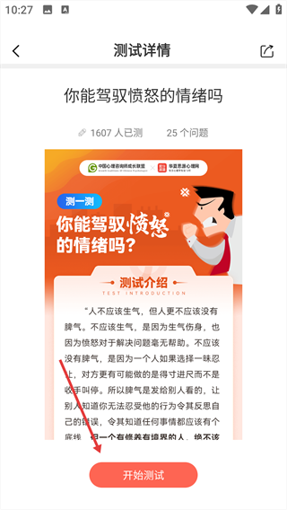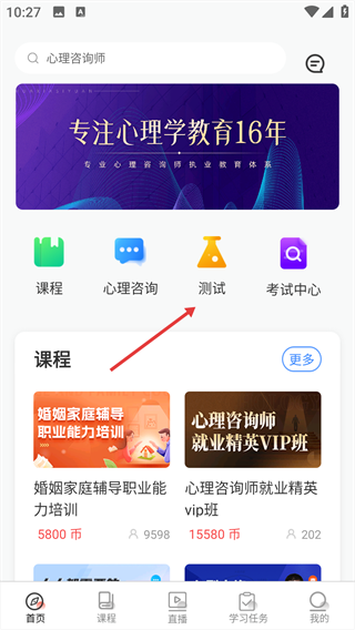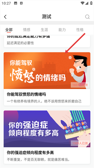 1、在app首頁找到【測試】功能按鈕點擊,進入心理測試板塊。