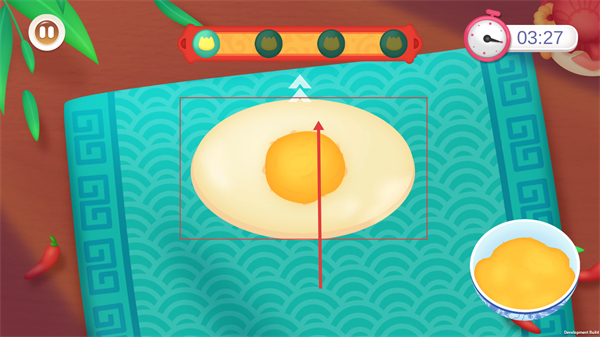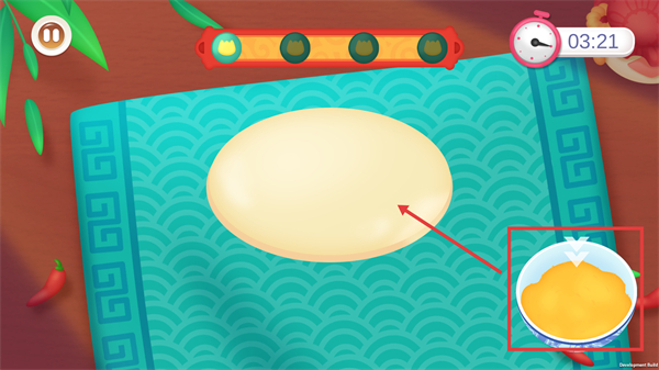 2、上下滑動屏幕,使面片包裹住【餡料】,繼續推進進程。