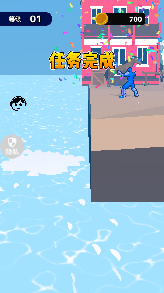 3、繼續(xù)操作,成功達(dá)成任務(wù),界面顯示【任務(wù)完成】,金幣數(shù)達(dá)700,場景出現(xiàn)彩色紙屑慶賀。