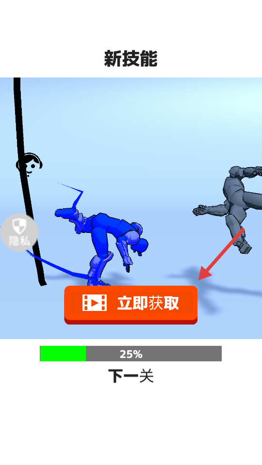 4、任務(wù)結(jié)束后,可點擊【立即獲取】解鎖新技能,或等進(jìn)度條滿100%后點擊【下一關(guān)】進(jìn)入后續(xù)關(guān)卡。
