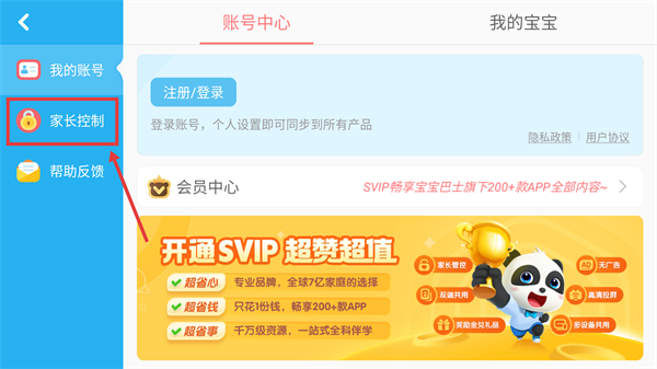 3、驗證通過后進入相關界面,在左側菜單找到【家長控制】選項,點擊即可進入對應的功能設置頁面。