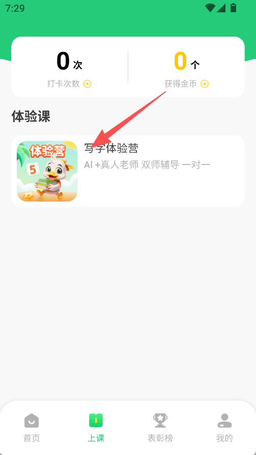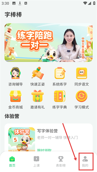 2、點擊“上課”,還可進入寫字體驗營,有老師輔導練字。