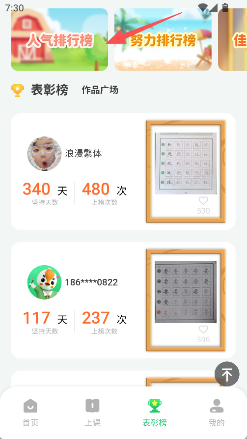 3、進入“表彰榜”,能看到人氣排行榜等榜單。
