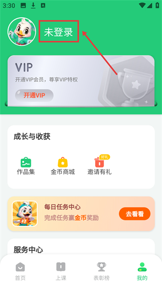 2、進入【我的】頁面后,找到上方的【未登錄】按鈕并點擊,進入登錄相關的操作界面。