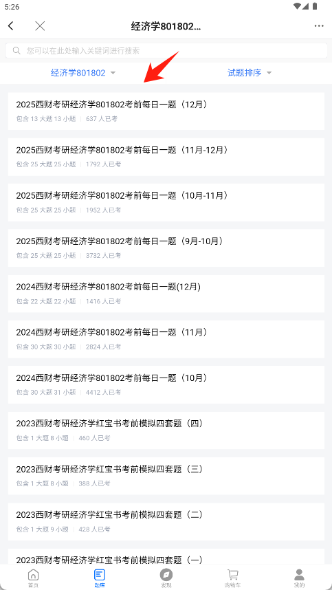 3、進入試題列表后,點擊進入即可開始練習或考試。