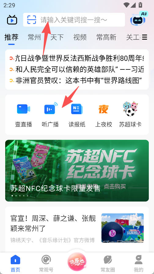 1、打開首頁輸入關鍵詞即可查找所需內容或聽廣播。