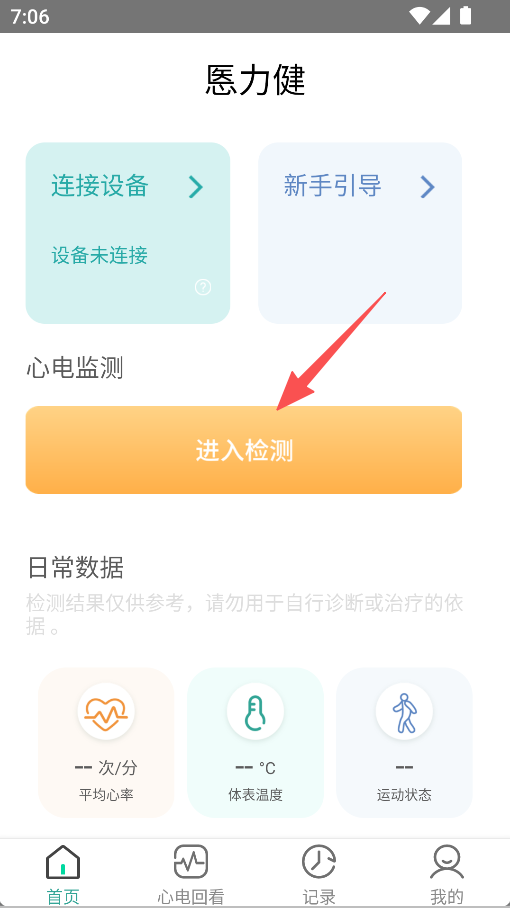 3、界面功能布局清晰,心電監測、知識科普、健康建議等核心板塊分明,方便快速找到并使用所需功能。