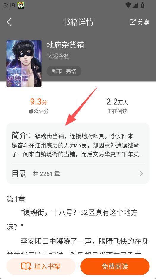 3、支持小說詳情查看功能,進入詳情頁,可查看簡介、目錄,方便閱讀前了解小說。