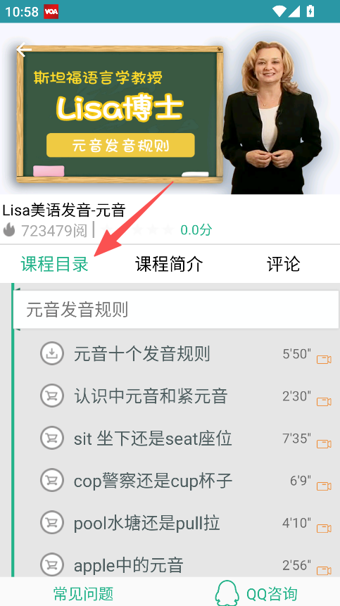 3、點擊課程小節(jié),開始學(xué)習(xí)Lisa博士講解的美語發(fā)音內(nèi)容。