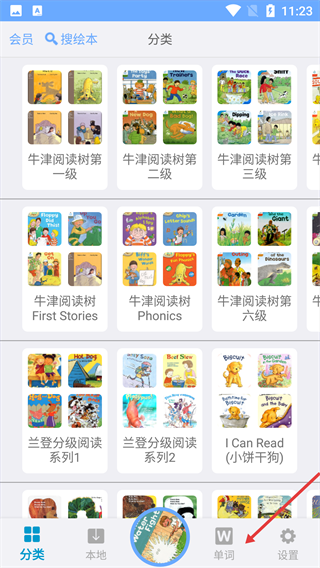 1、在分類頁(yè)面點(diǎn)擊【單詞】可進(jìn)入單詞頁(yè)面。
