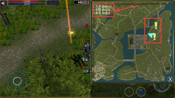 4、根據地圖任務提示,前往標記區域,完成殺死【蜘蛛】5/5、【幼龍】5/5的任務,獲取獎勵提升戰力。