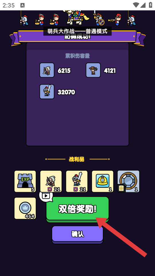4、關(guān)卡防御成功后,點(diǎn)擊【雙倍獎(jiǎng)勵(lì)】按鈕,獲取更多戰(zhàn)利品(如經(jīng)驗(yàn)、傭兵碎片等),助力游戲發(fā)展。