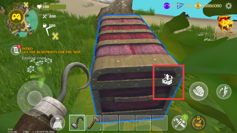 4、探索場景中的寶箱,與之互動(通過寶箱按鈕),獲取船只藍圖等重要道具,推進游戲劇情,解鎖新的游戲內(nèi)容。