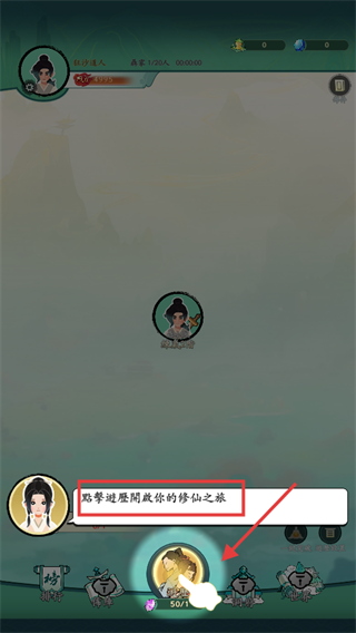 2、點擊下方【游歷】按鈕,開啟修仙之旅,可觸發劇情、獲取機緣,推進角色發展。