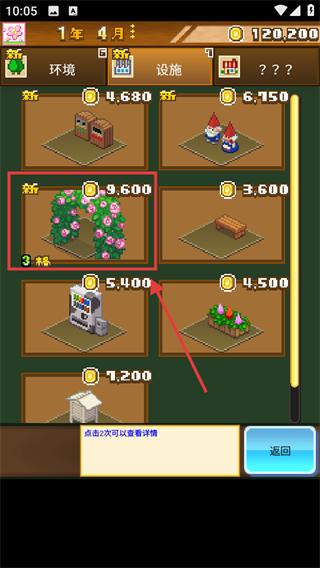 1、建造【花拱門(mén)】類(lèi)裝飾設(shè)施,消耗【9600】金幣,提升牧場(chǎng)魅力,吸引更多顧客獲取收益。