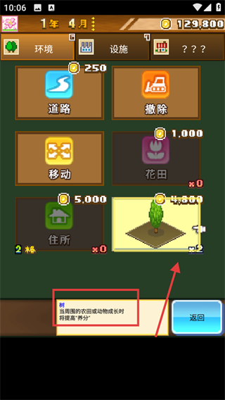 3、合理布局【道路】-【花田】-【住所】等設(shè)施,利用【移動(dòng)】-【撤除】功能調(diào)整,促進(jìn)動(dòng)植物成長(zhǎng)提升魅力。