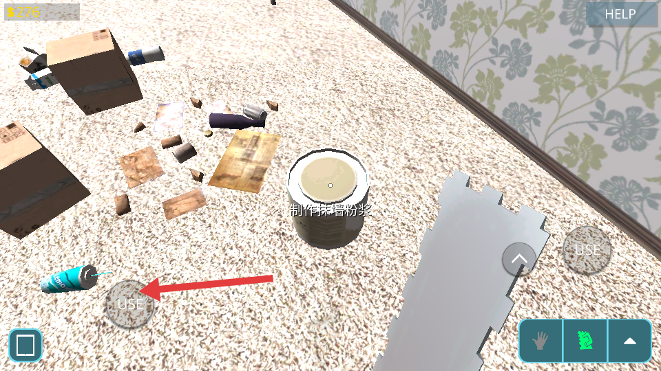 2、在房間中使用油灰漿,點擊【USE】按鈕,開始對房屋進行修繕工作。