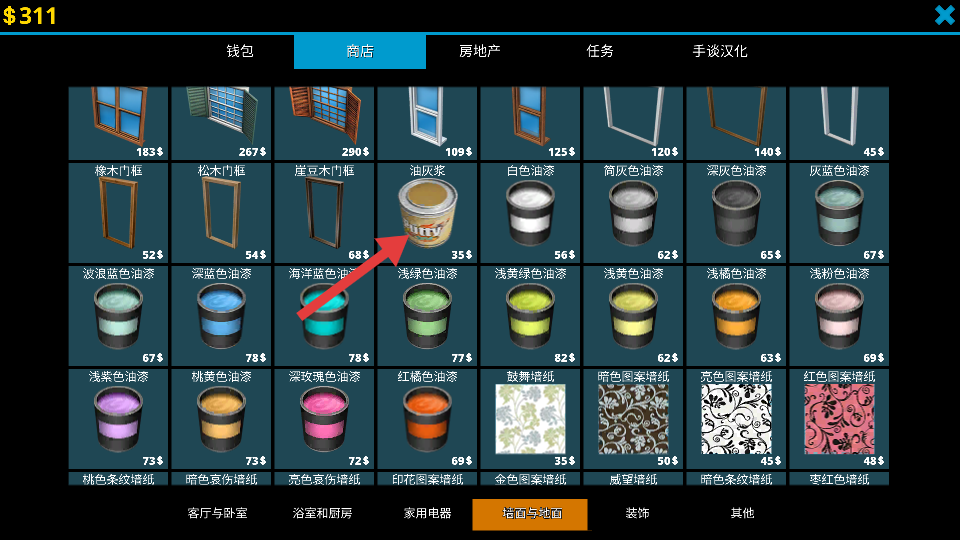 1、在商店中選擇油灰漿材料,花費金幣購買,為房屋修繕準備物資。